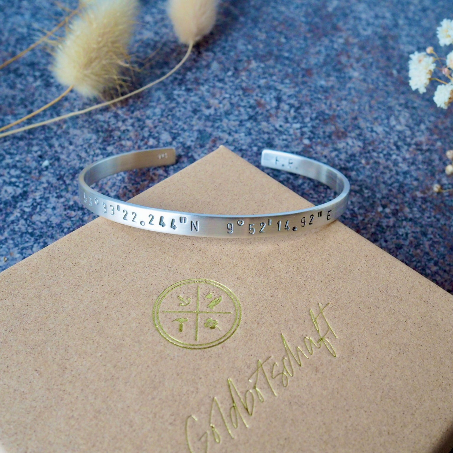 Übrigens - Du entscheidest, ob Du Deine Botschaft aussen für alle sichtbar - oder innen - nur für Dich - tragen möchtest oder du den Armreif blanko haben möchtest.